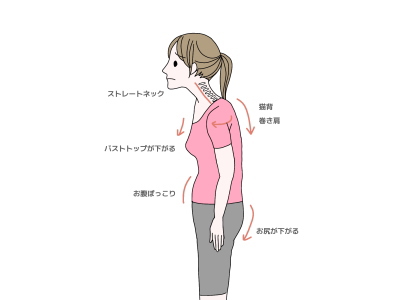 スマホ首とは、スマホやタブレットを見るために、首と頭が前のめりになっている状態。